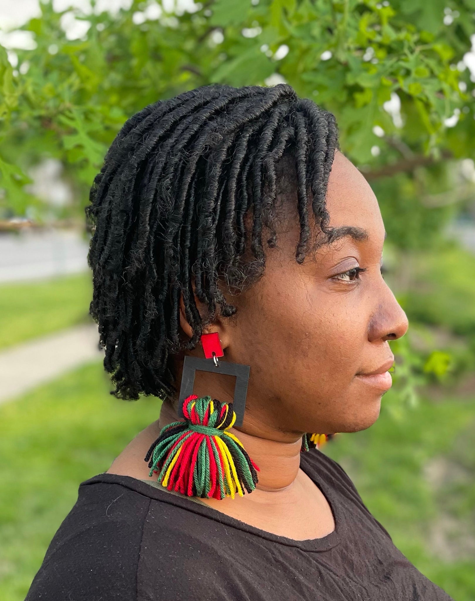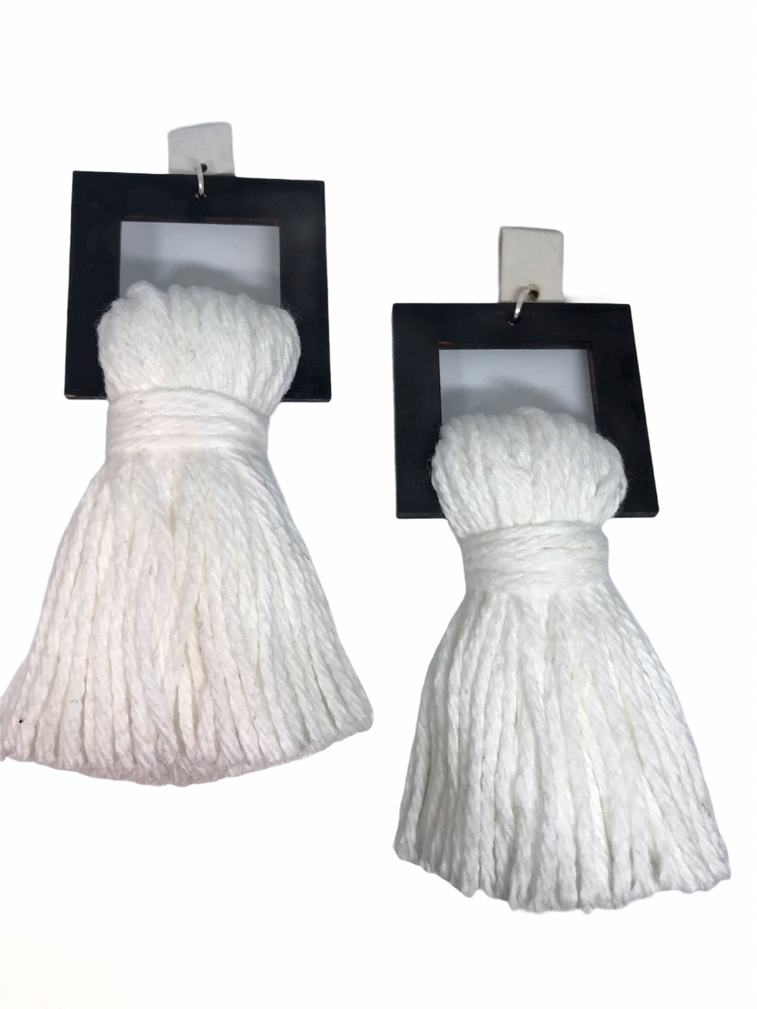 These fashion forward custom made earrings are a so vibrant and colorful and can match a lot that you may have! A perfect accessory for plenty of occasions. They are 4 inches in length and are made with a lightweight wood that you can't feel at all. And they come in 4 different colors and are made with Hyperallergic findings.