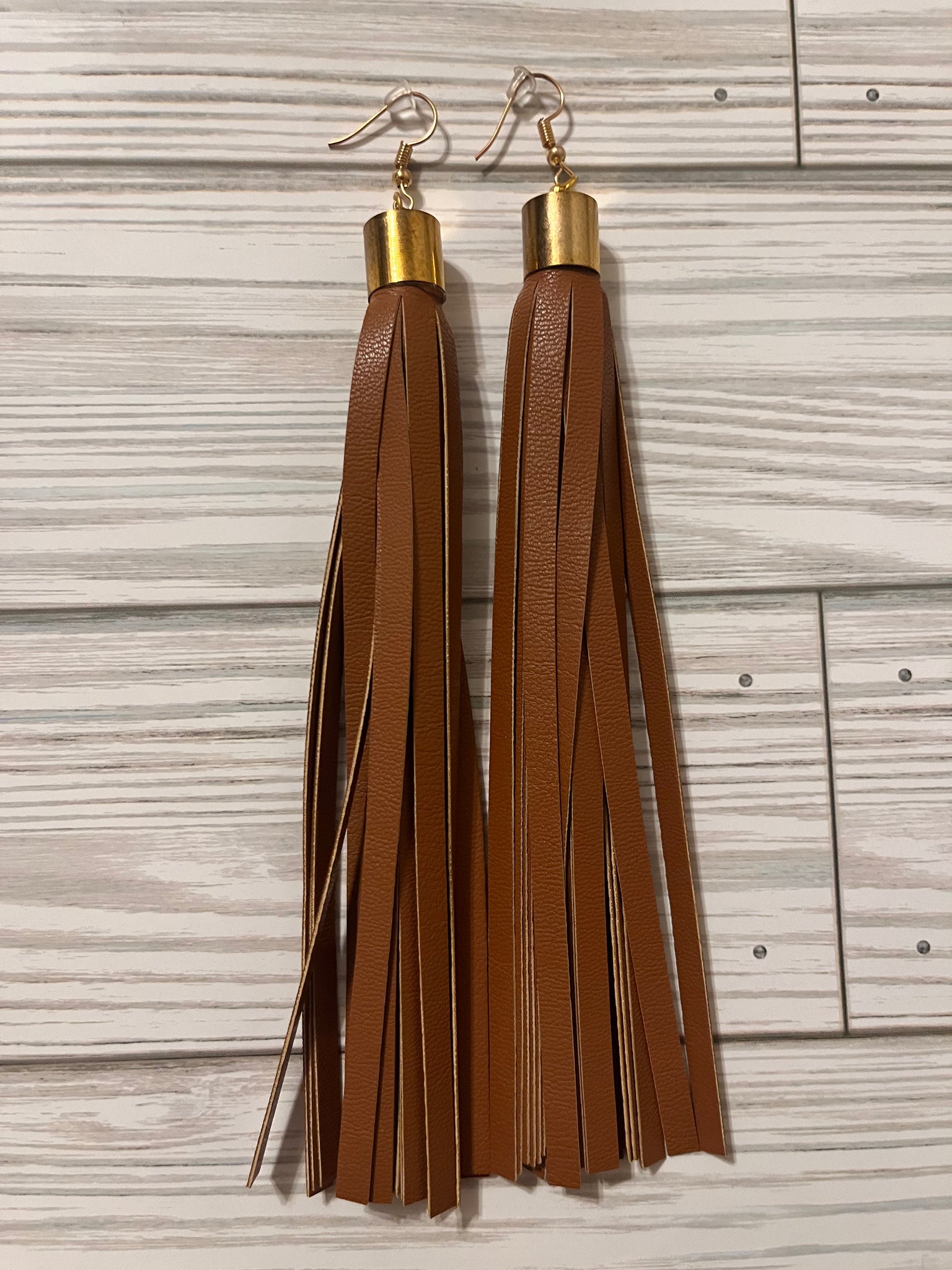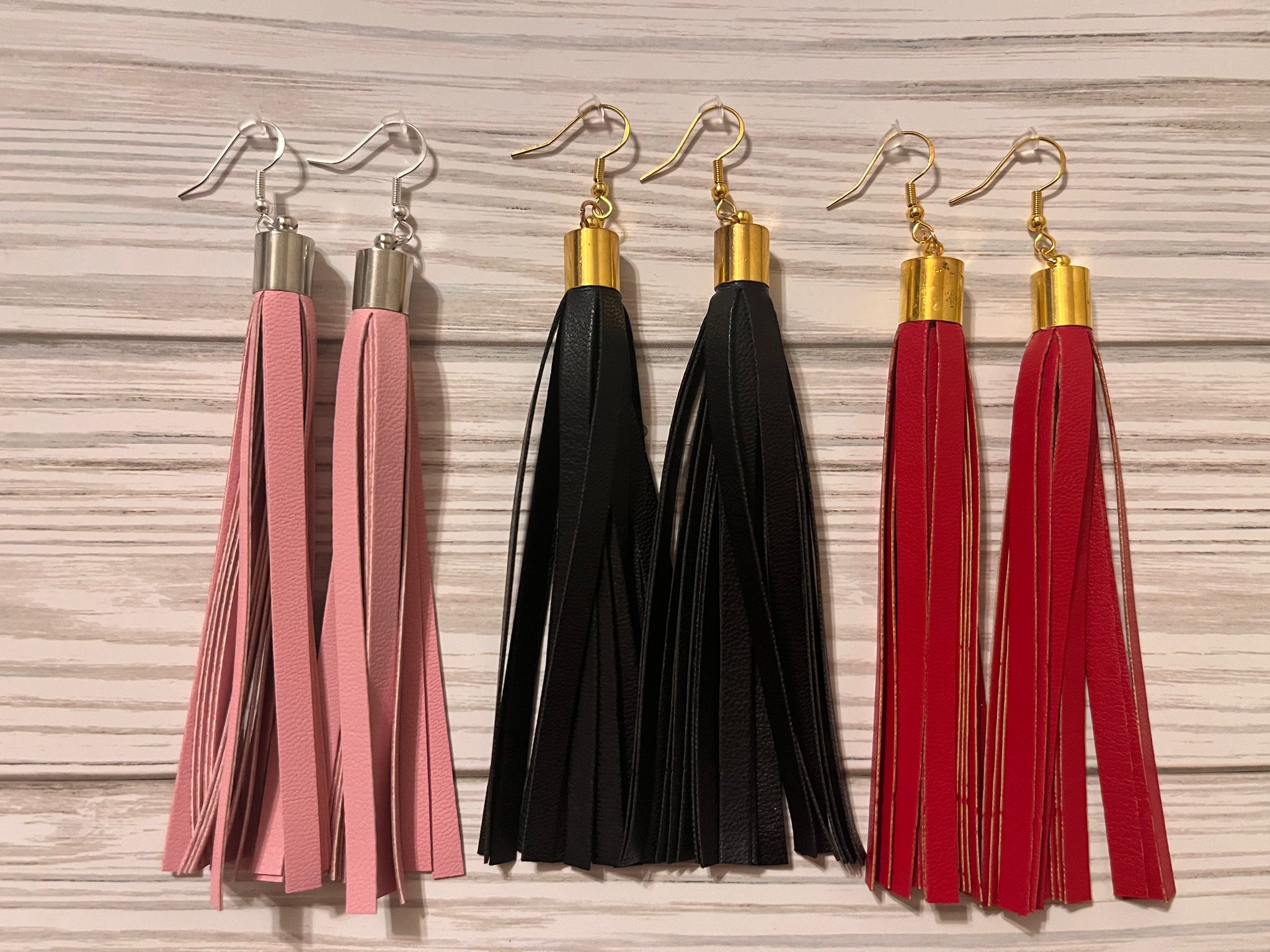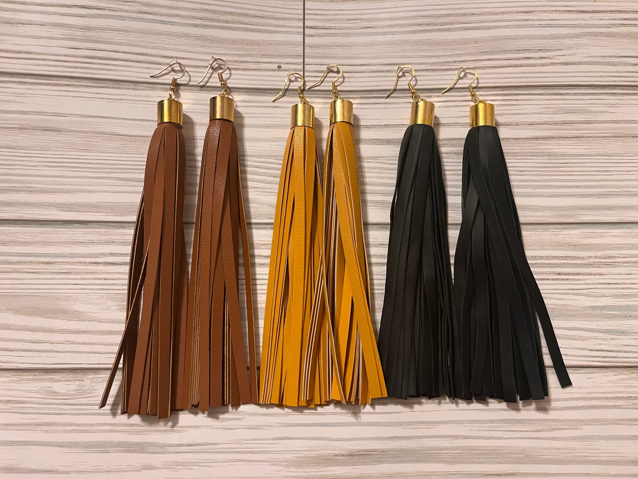 • Load image into Gallery viewer, PU Leather Tassel Earrings
